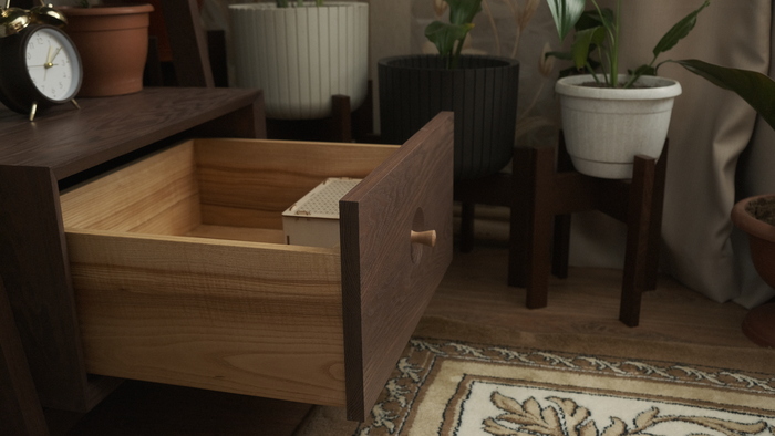 Относительно недавно я делал этажерку в скандинавском стиле, и при изготовлении нового предмета интерьера я решил руководствоваться той же концепцией. Я люблю прямые линии, острые углы и минималистичный дизайн. Это сугубо моё видение к подходу в выборе мебели, и я уважаю выбор тех, кому нравятся всякие фигурные фрезеровки, канелюры, розетки и т.д.