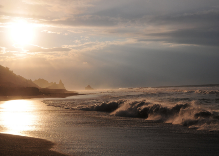 Пляж знаменит цветом побережья и суровыми морскими пейзажами. Купаться здесь решаются только любители острых ощущений, так как вода редко прогревается до комфортной температуры. Но посетить пляж все равно стоит ради впечатлений и волшебной картинки. Фотографии оттуда получаются захватывающими: черные пески на фоне голубого моря создают поистине инопланетный ландшафт. Пляж находится на мысе Слепиковского, а добраться оттуда можно на трансфере или на машине от г. Холмск.