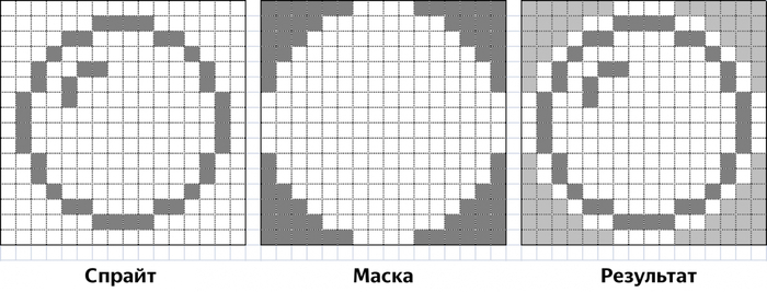 При выводе объектов использовалась так называемая маска, визуально похожая на контур спрайта. Она позволяла очистить фон под спрайтом объекта, сохранив при этом соседние пиксели. Без этой технологии, которая в то время использовалась далеко не во всех играх, не получилось бы так филигранно накладывать объекты друг на друга.