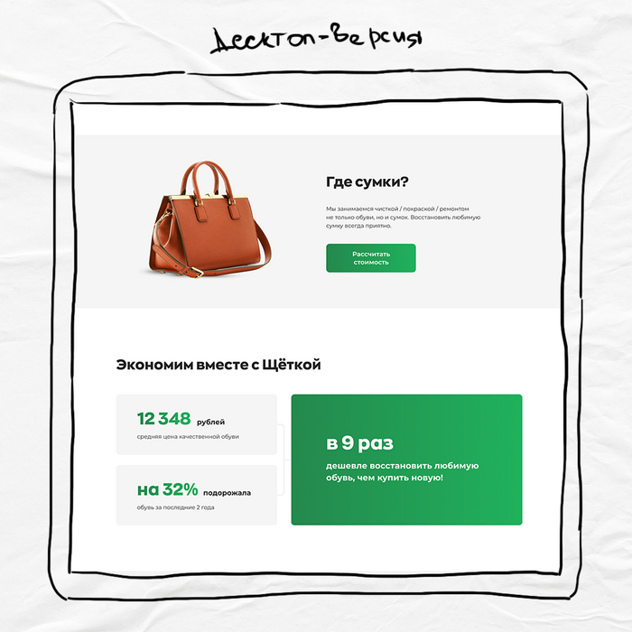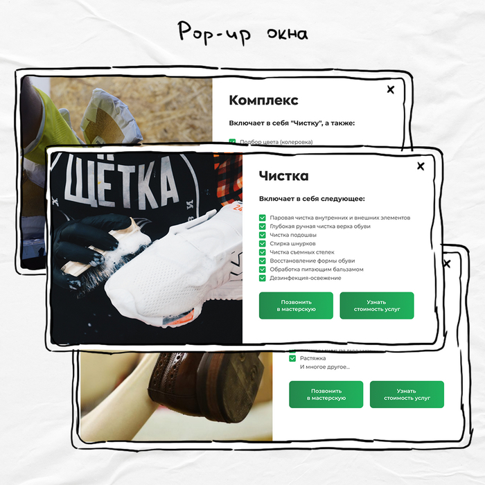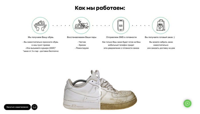 Затем добавили услугу покраски обуви, которая помогала работать с возражениями. (если какие-то пятна не могли быть удалены, клиенту предлагали покрасить место в более тёмный цвет, сохраняя при этом качество).