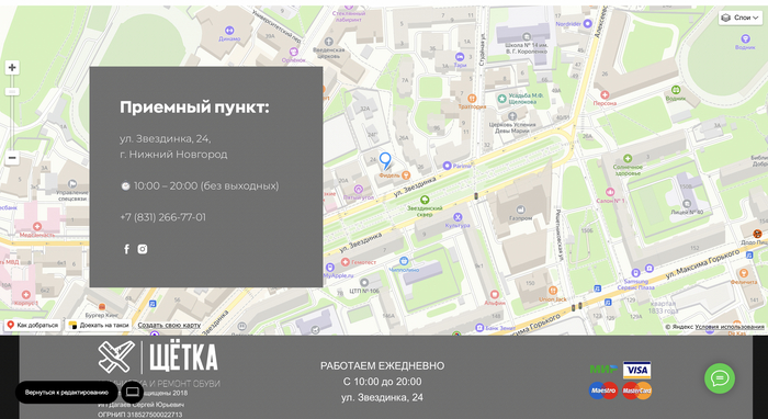 После того как мы получили первых клиентов с Авито и ВК мы начали увеличивать количество площадок для коммуникации с аудиторией. Так мы завели Инстаграм, сделали посадочную страницу, а также добавили организацию на Яндекс карты, Гугл карты и 2GIS.