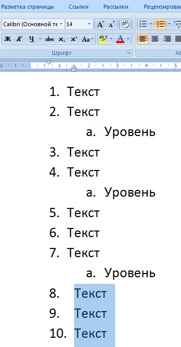 Может кому будет полезно. Работа с нумерованными списками в MS Word. Допустим ситуация такая.