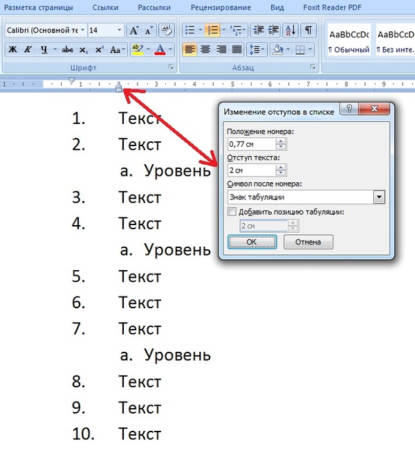 Надо щелкнуть правой кнопкой по списку и выбрать "Изменить отступы в списке..."