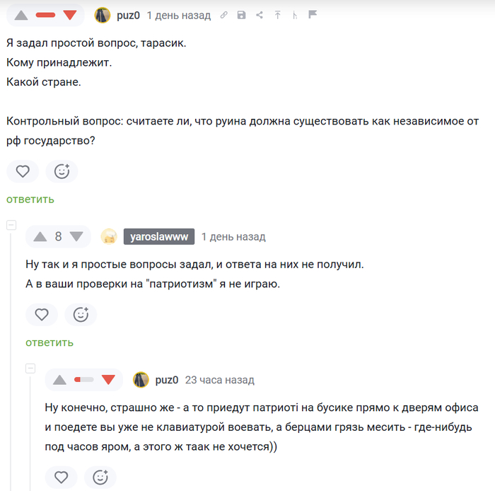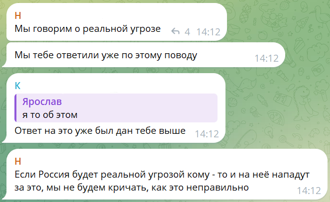 Есть люди, которые не защищают ни правду, ни страну, ни идею — только силу. Вот как я с такими столкнулся. В одном чате зашёл спор о пропаганде. Я заметил, что риторика сторон конфликта Украины и России одинакова:
