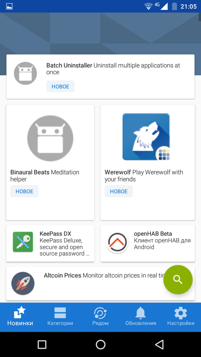 Если нужно программное обеспечение, то для этого я использую Fdroid. В Fdroid приложения только свободные и открытые, так что мне это на руку.