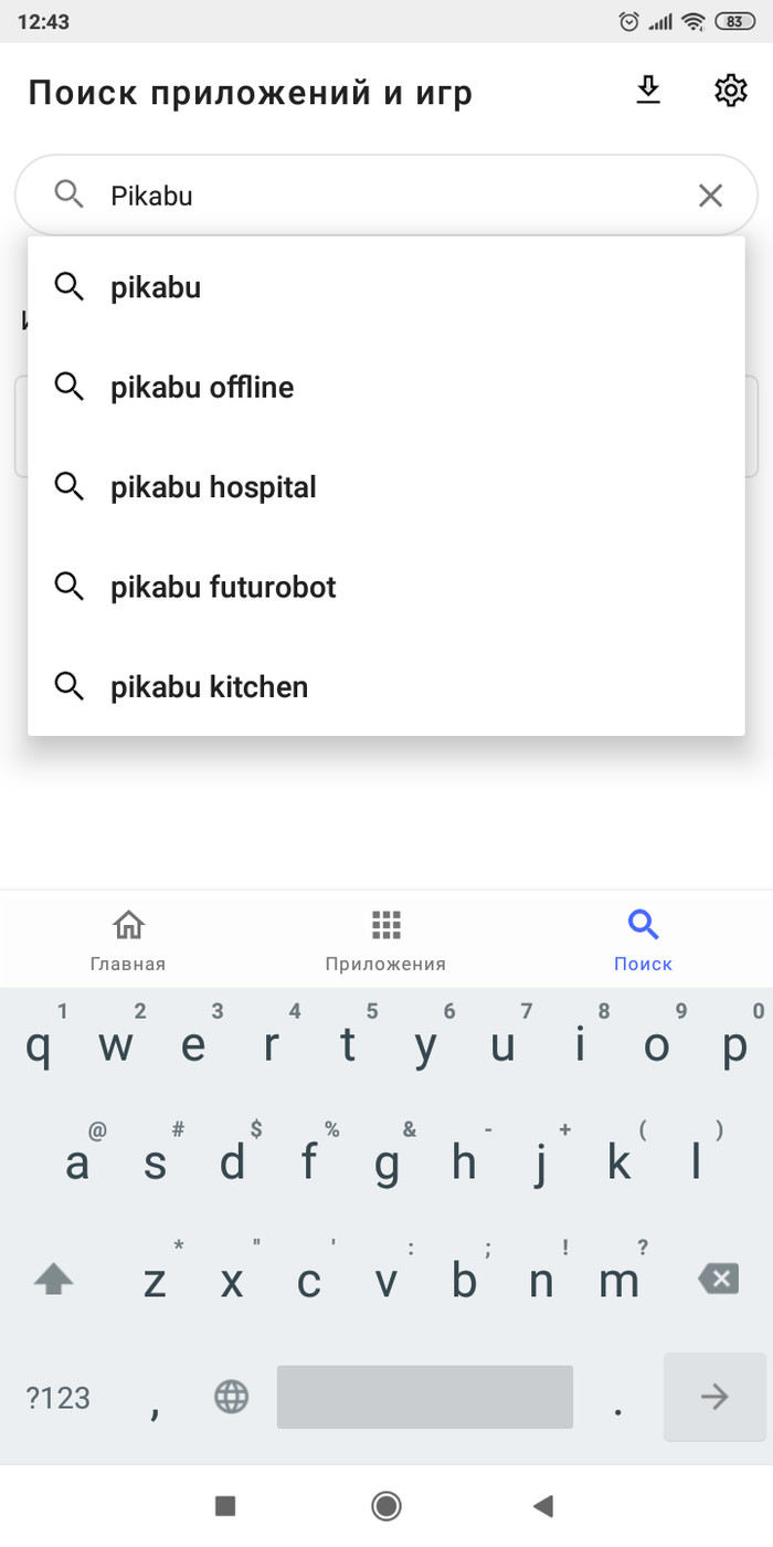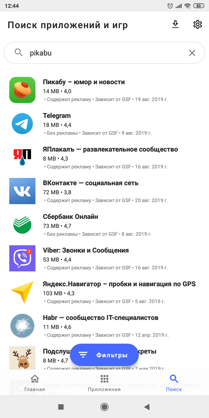 Для поиска нужного вам приложения есть кнопка поиск. Я ищу Pikabu.