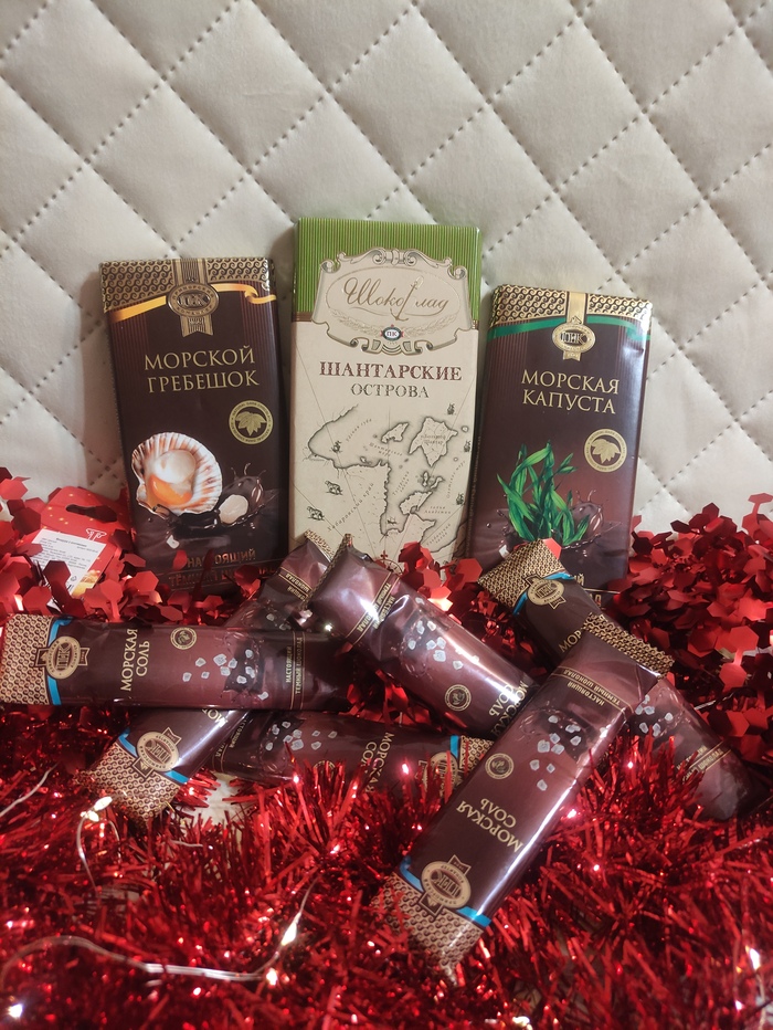 Я писала, что если вдруг пришлют сладкое, то его обязательно утащит муж. Ну тут даже я не устою, видела такой шоколад в посылках у других и тайно мечтала снять пробу))