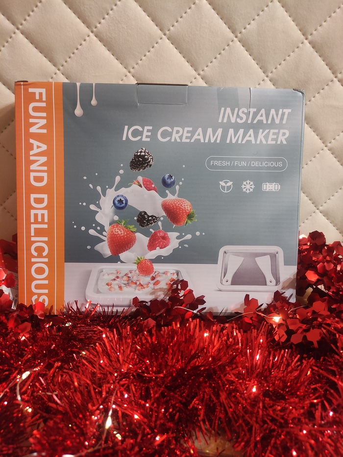 На дне коробки лежал очень увесистый свёрток. Вскрыв, увидела набор для приготовления мороженного. Будет интересно попробовать, как раз в морозилке куча ягод ждёт своего часа.