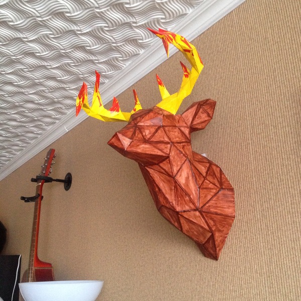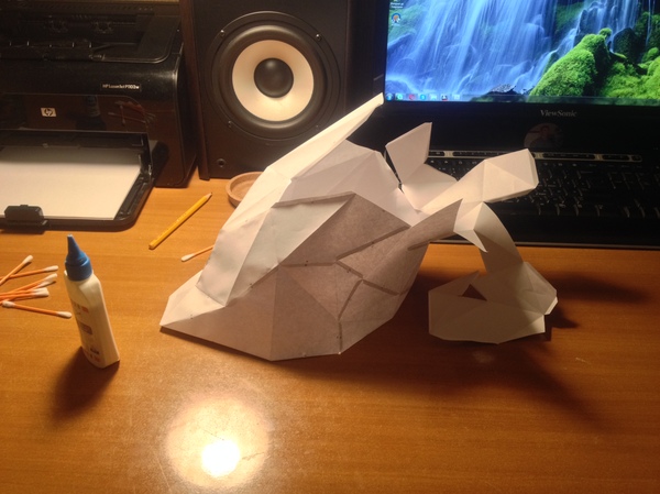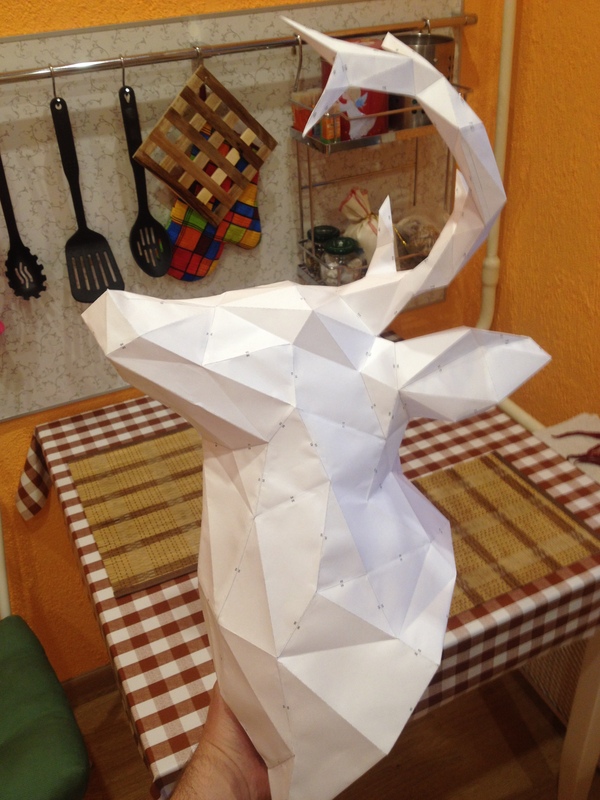 Случайно увлекся Pepakura. Первым стал вот такой олень. Самое сложное, конечно, это рога. Клеить не очень удобно, но результат радует)