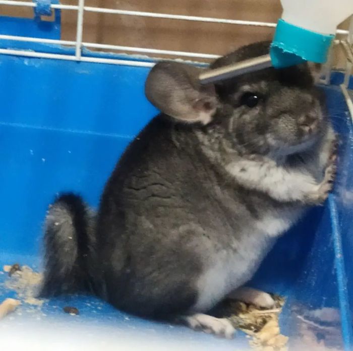 А сегодня мы сгрызли все 30 хомутов, державших досточку, на которую можно было прыгать. Она упала - и мы в испуге бегаем по клетке
