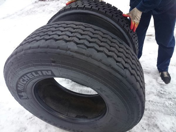 Размер 385/65 - прицепные колёса "батоны", они всегда всем нужны, так как машины идут с перегрузом и колёса бахают. Поиском каркасов под восстановление занимался тоже я, и по наводке Дмитрия вышел на шиноутилизаторов - ребят которые резали шины в крошку и продавали её тем кто делает из неё плитку и покрытия для детских площадок. Шин у этих ребят было очень очень много! Помните Спрингфилдский шинный пожар? Куча, что увидел я была раз в 20 больше, но шин всяких, и те что нам были нужны приходилось искать. Я и все ребята из цеха лазали по этой куче и выискивали нужные нам шины, было весело, грязно и тяжело.
