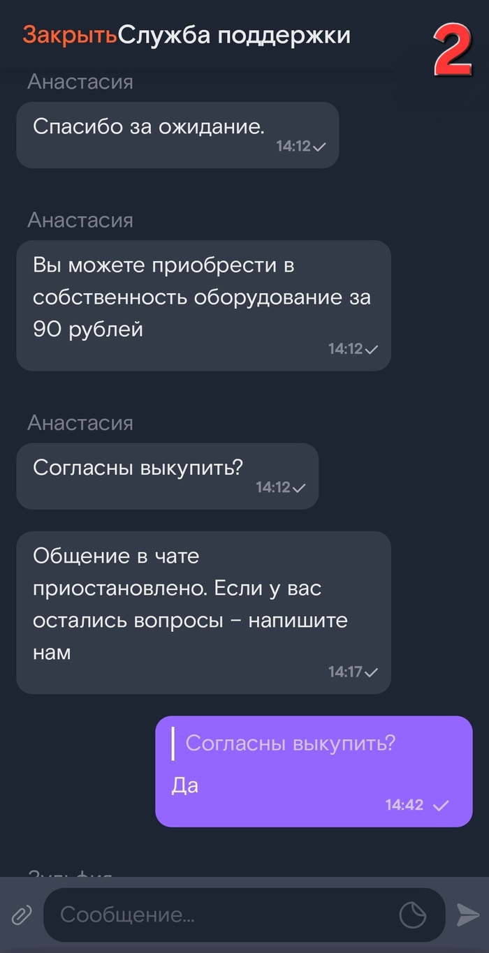 Недавно я получила сообщение:"Оборудование переведено в выкуп, сумма выкупа (945р) согласована со мной, счет за оборудование будет включен в счет за август. Без меня, меня женили. Вот такой вот агрессивный маркетинг.