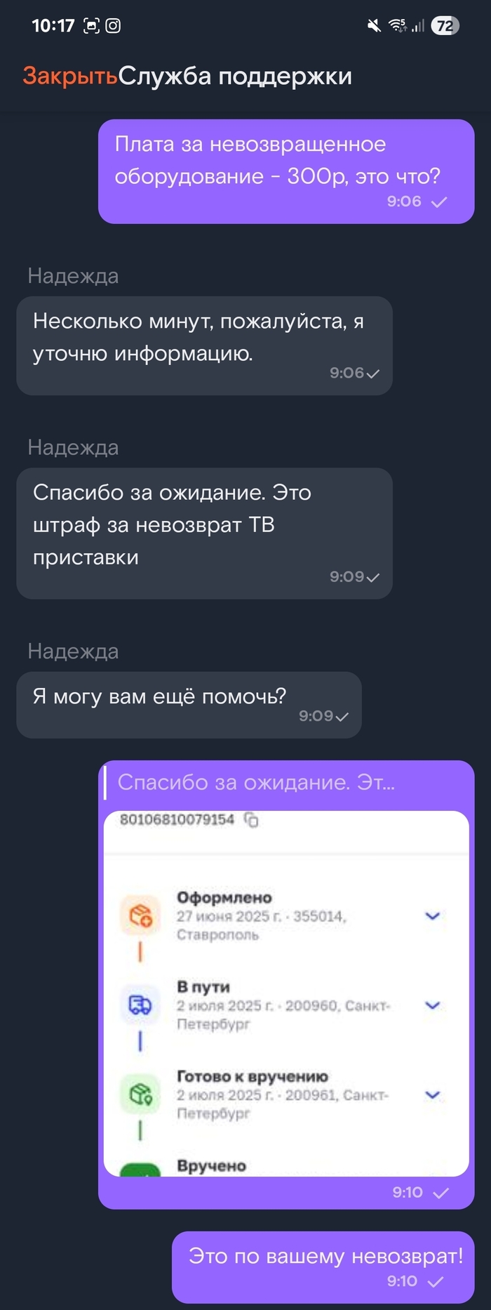 Сам процесс общения с оператором оказался неэффективным и раздражающим. Большинство операторов либо не могли разобраться в ситуации, либо давали неверную информацию, вызывая лишь большее замешательство.