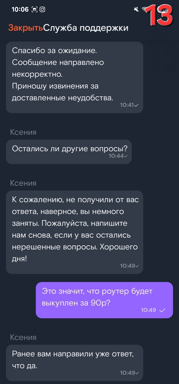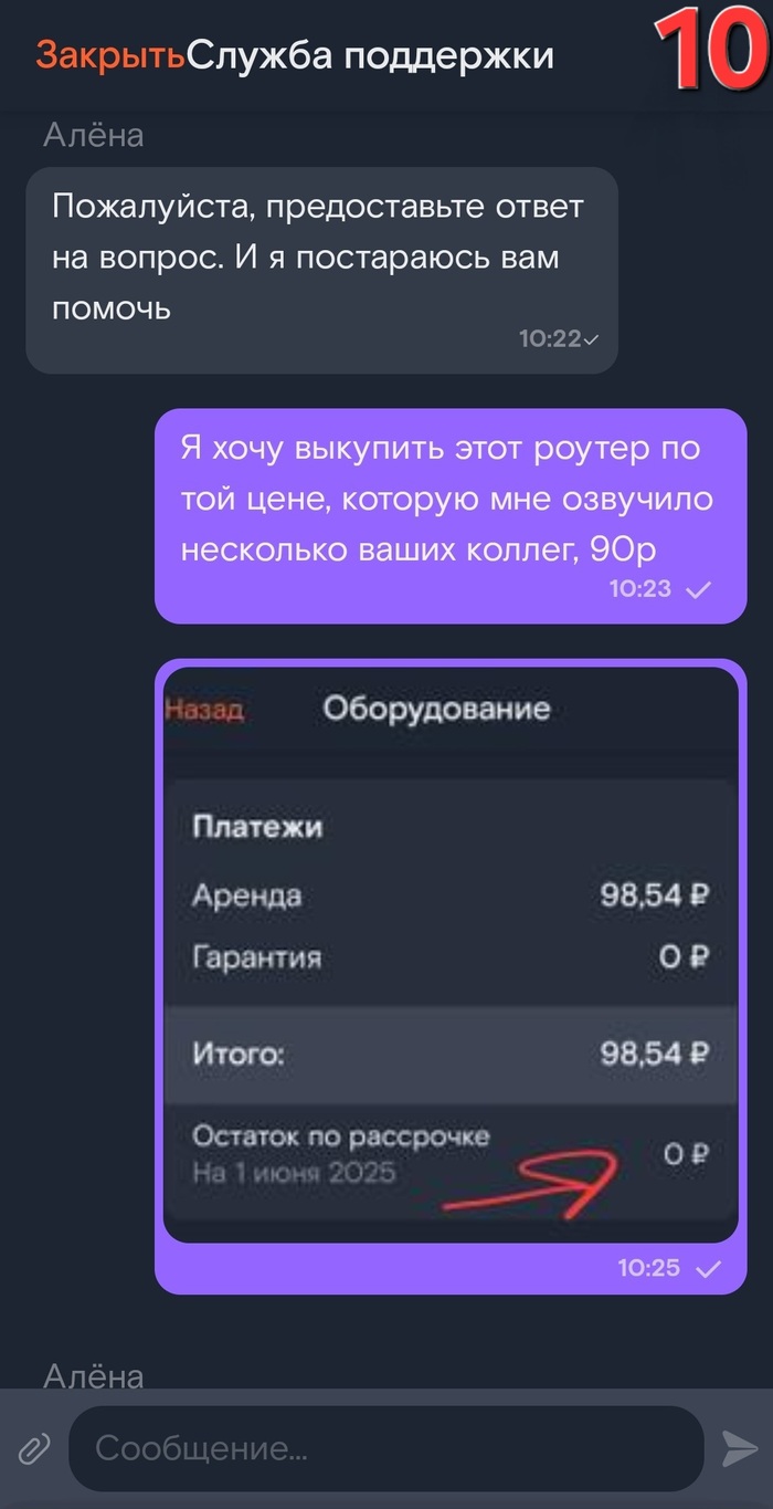 Далее последовала череда ошибок и непонимания со стороны сотрудников службы поддержки. Я хотела увеличить скорость интернета, позвонила на горячую линию и оператор предложила выкупить роутер вместо ежемесячной оплаты аренды. Мне обещали стоимость выкупа в размере 90 рублей, но впоследствии эта сумма увеличилась в десять раз до 945 рублей! Несмотря на неоднократные попытки выяснить причину увеличения цены, объяснения представителей оказались запутанными и невнятными.