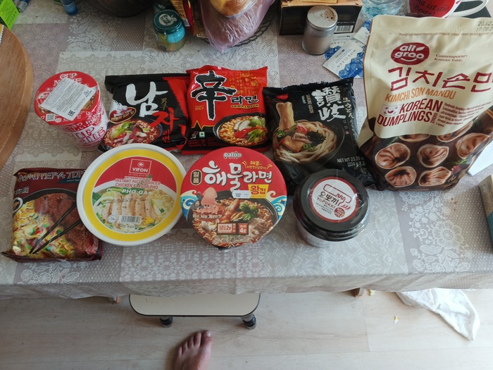 Лапшу с крабом, к примеру, ел с добавлением краба.