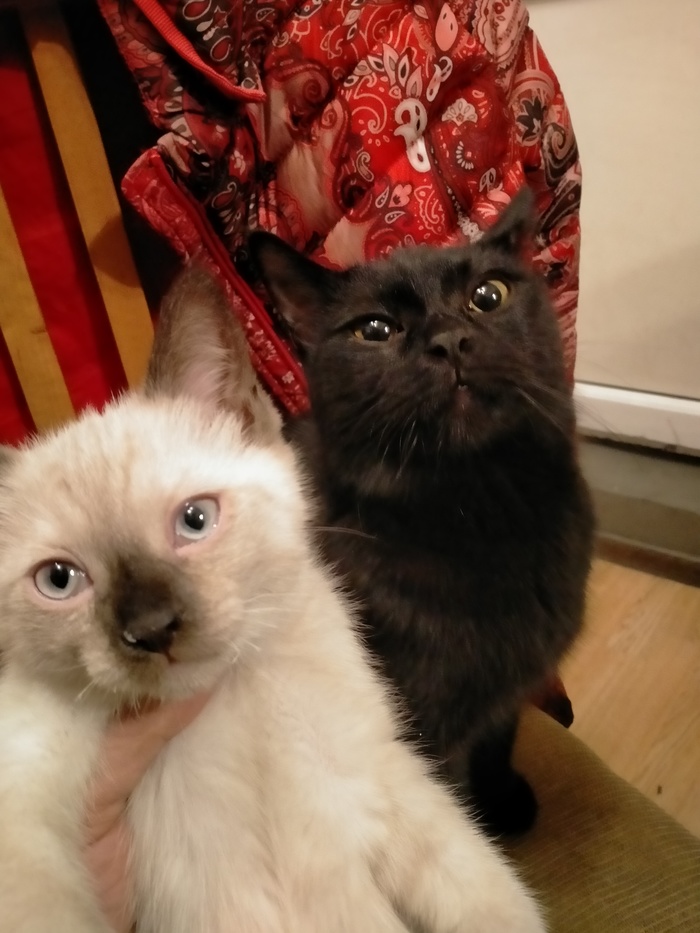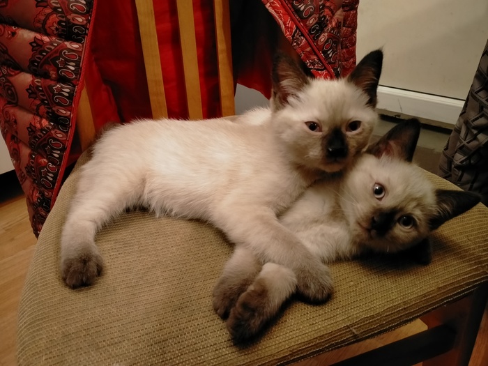 Отдам котяток в добрые руки. Два мальчика и одна девочка, кто из них кто не знаю - они одинаковые по мне. Черная это мама. Смесь двух пород или трёх. Маму отдали знакомые уезжая за границу, она вроде как бомбейская, папа полу сиамец. К лотку приучены, едят все, но возможно аллергия на курицу. Веселые, шебутные, умненькие. Москва, район метро пионерская. Возраст 2.5 месяца.