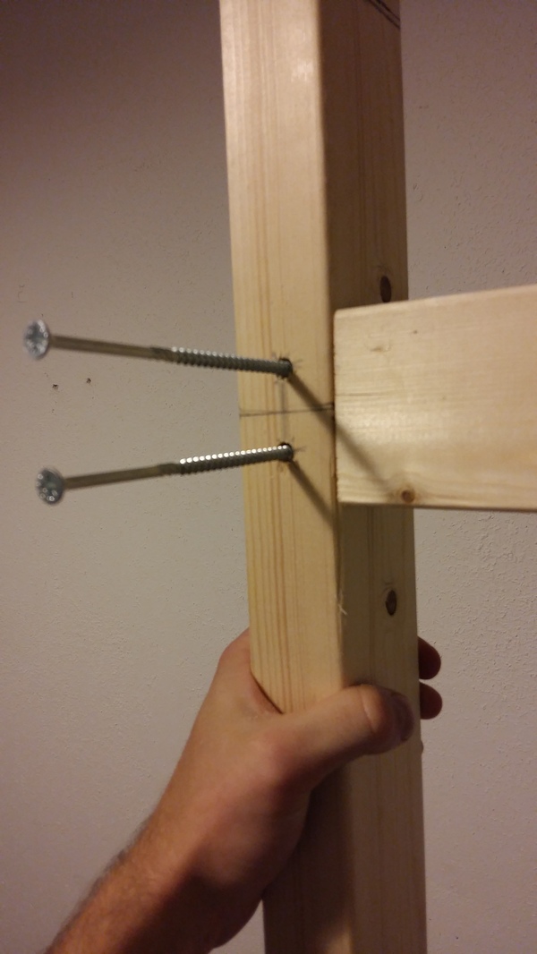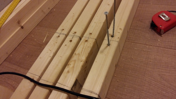 Длинные балки пришлось поднять, чтобы не делать слишком много дырок в одном месте на ножке и распределить нагрузку.