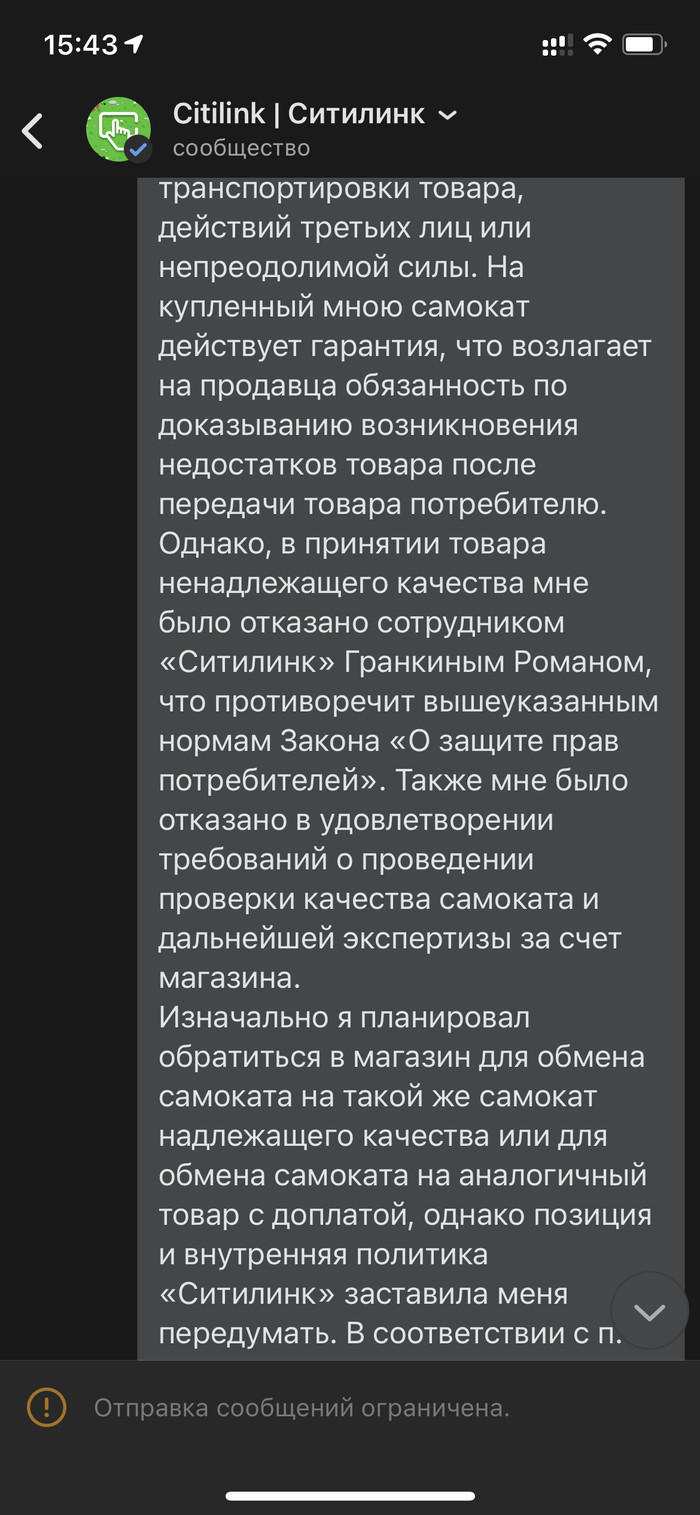 Ситилинк внаглую игнорирует, нарушает законодательство РФ