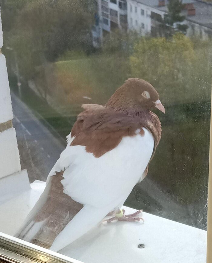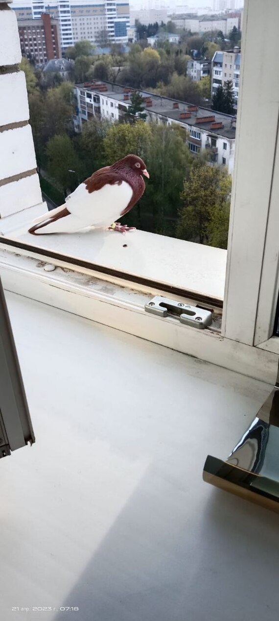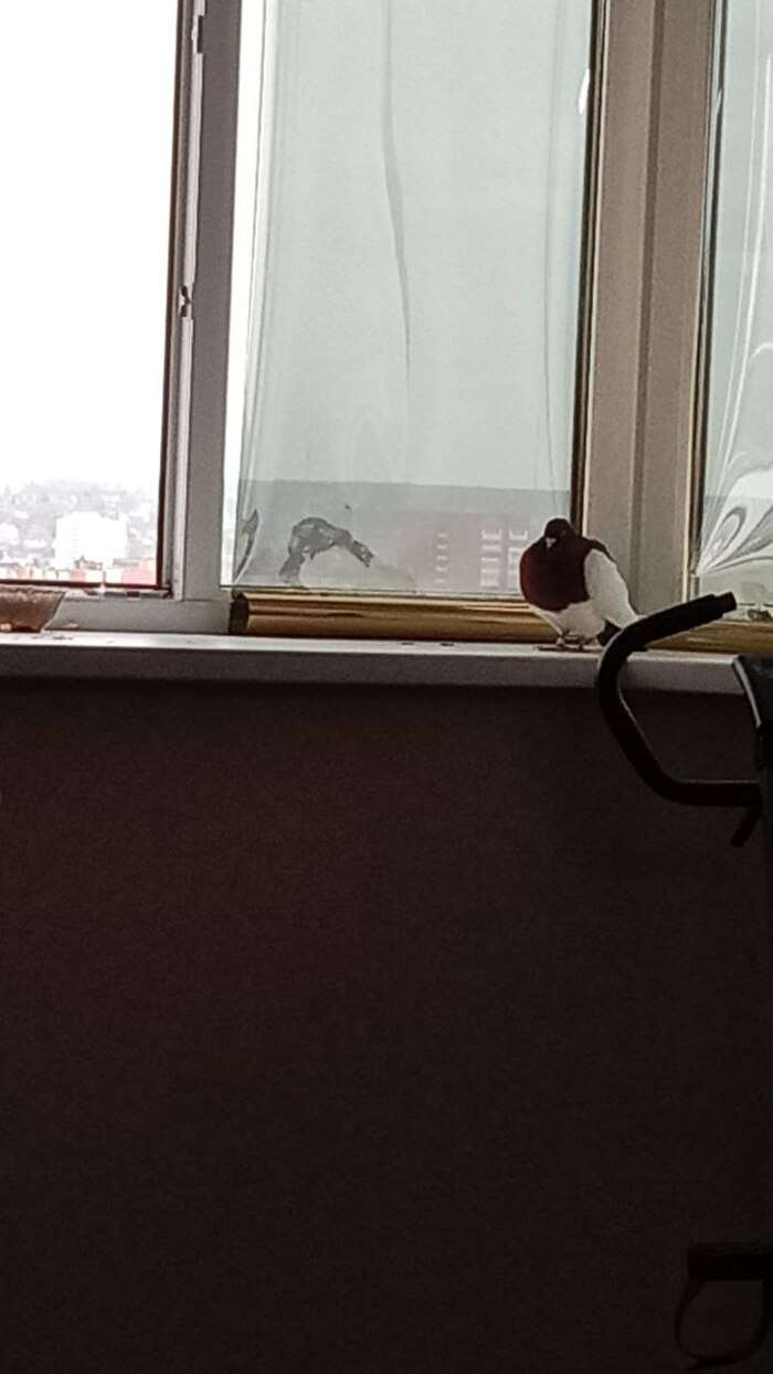 Гульбарс попил-поел, осмелел и зашёл в хату. Сидит теперь на подоконнике, чистит перья, дремет и улетать вроде как совсем не рвётся, хотя жена окно не закрывает.