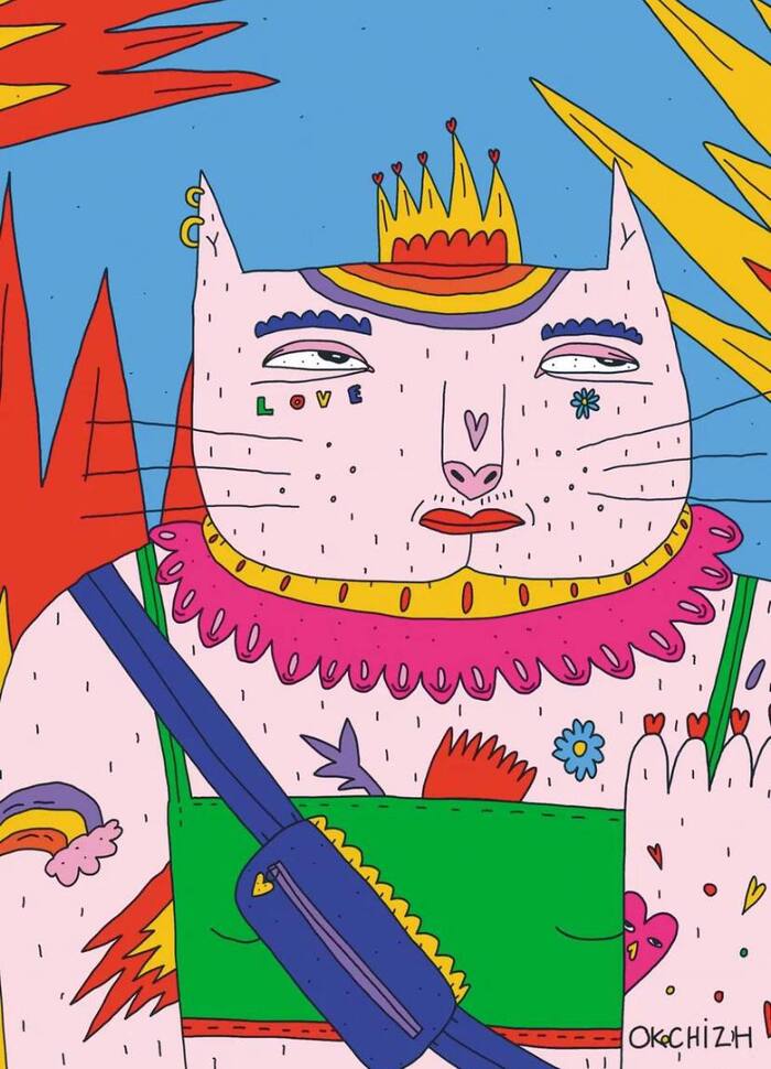 Работа называется "Кот-рейвер". У него ещё есть парочка в виде "Кошки-рейверши".