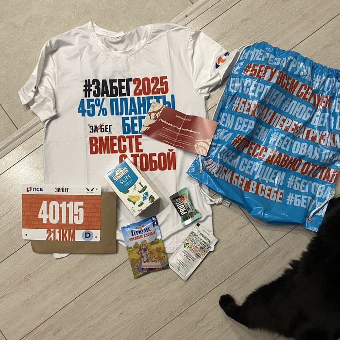 Этот марафон благотворительный, бежали за донат. Поэтому никаких медалей и футболок не было. Только номерок, стикеры сбера и батончик из Самоката) Зато медали дали всем детям.