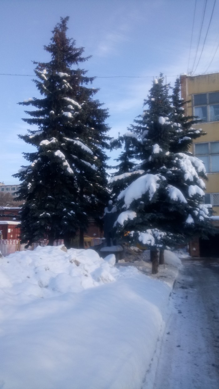 7 высоких елей, да еще и в снегу. В елках памятник Ильичу, который Владимир Ленин.