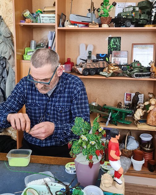 «И точно так же с бисером работаю. Начал заниматься им случайно. Мне жена Катюша показала в интернете сплетенное денежное дерево и попросила купить. Ну я взял и сам сделал. А потом залип на этот бисер. Сейчас у меня своя техника плетения, все сам придумываю, без всяких шаблонов. Увидел где-то на улице красивую картину, домой прихожу и копирую», — говорит Перевалов.