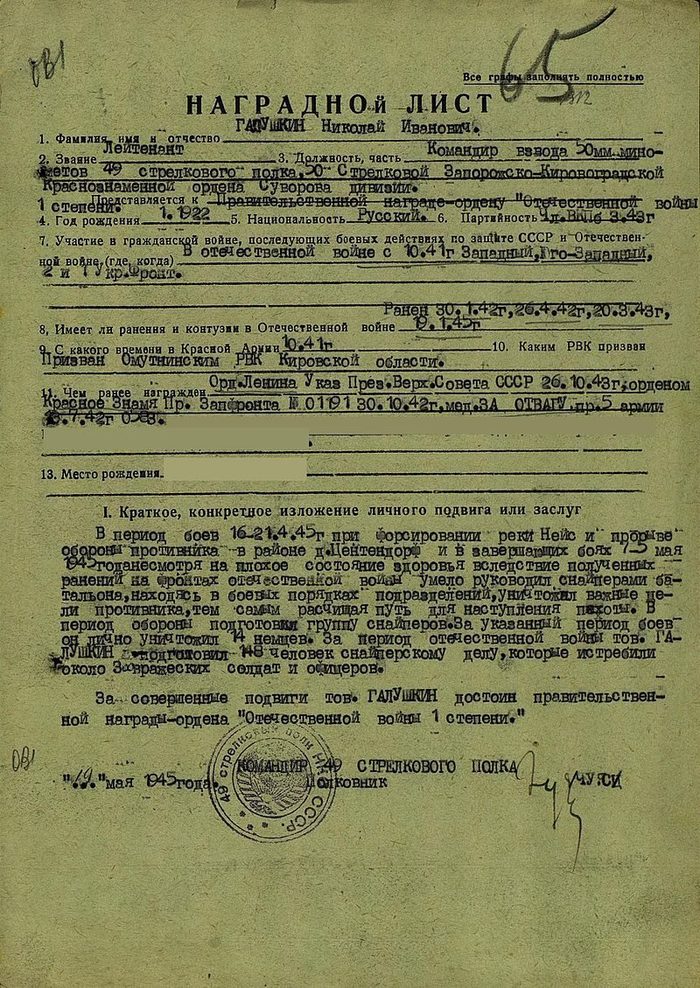 За этот бой младший сержант пулеметчик Федор Чистяков был награжден орденом Ленина.