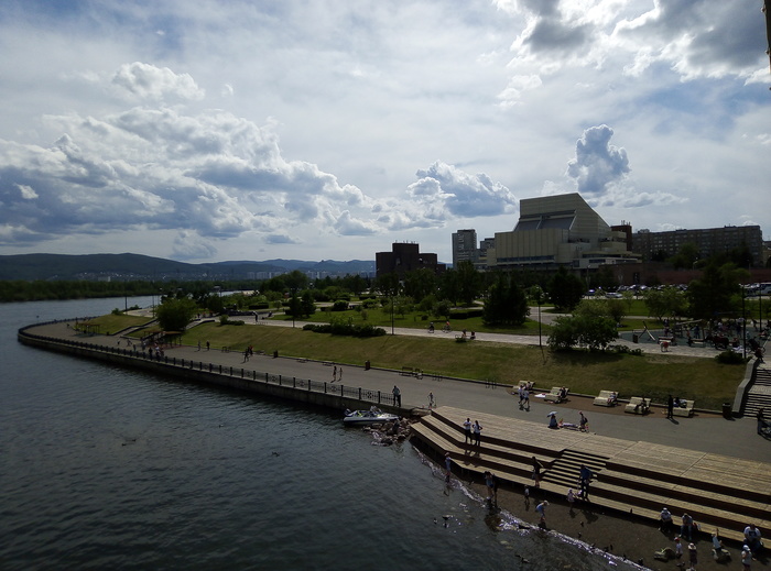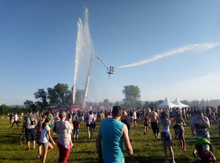 Пока был в городе - гулял, был на летнем фестивале Зелёный, что проходит на острове Татышева, да и, наверное, особо больше нечего рассказывать)) В день фестиваля на улице было +30. Жара, духота, потому я выбрался уже ближе к вечеру))) Но были крутые моменты))) Можно было облиться холодной водой с пожарной машины))) Ну и сразу расскажу - у нас там в парке оч большая площадь газонов, где и были выставлены стенды, конкурсы, лавки сувениров и тп. Ну и на этих газонах люди устраивают пикники, загорают и тд)) Потому на фотках есть и люди в купальниках)) и да, водичка была холодной))) и перед душем был залп из красок))