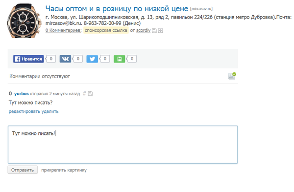 yurbos Комментарии в рекламу 9 лет назад Понятия не имею зачем, но я туда ткнул(именно на надпись "0 комментариев") Но тудысь смог написать.Понимаю что это не имеет смысла, но вдруг найдется применение. Пикабу Реклама Комментарии
