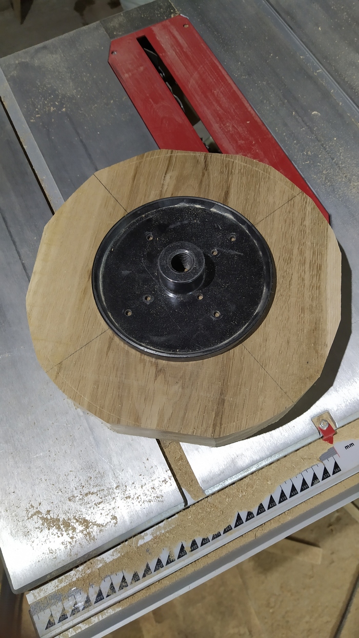 Дальше нужно бы переставить в токарный патрон, но он стоит столько же, сколько и такарный станок, поэтому подклеиваем что-то, к чему можно прикрутить планшайбу