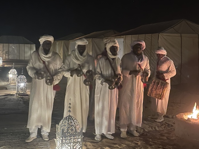 В лагере нас ждал ужин. В каждой палатке были кровать, душ, умывальник и унитаз. Как они все это оборудовали в пустыне? Не знаю. Берберы не перестают удивлять!