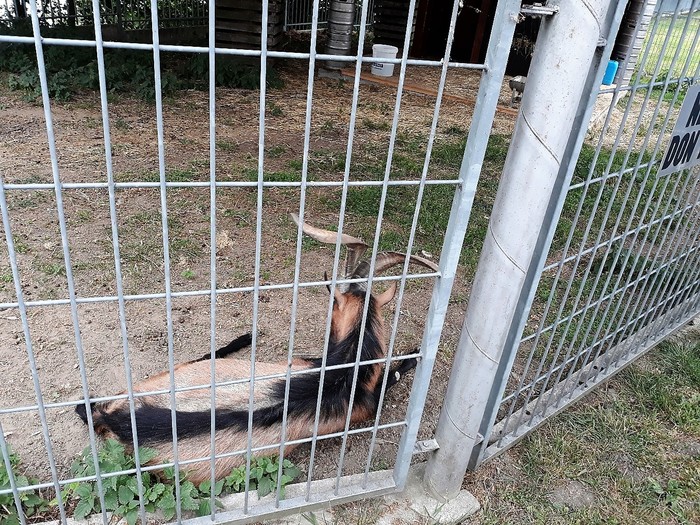 После выхода с завода мы прошли у вольера с тем самым козлом из рекламы. Правда он не был особо настроен на общение с людьми))