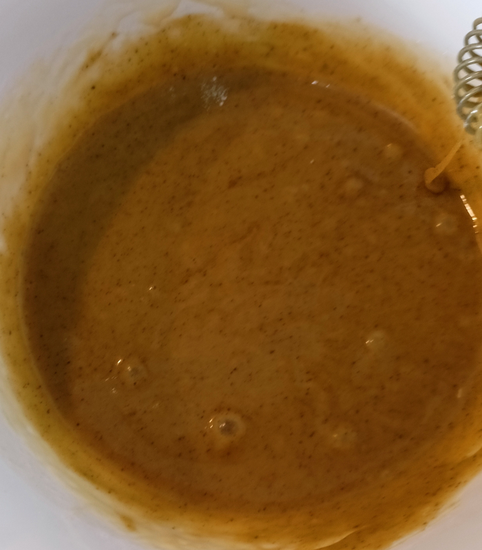Добавляю натёртую тыкву, размешиваю венчиком, матерюсь - тыква наматывается на венчик, волокна слишком длинные получились))