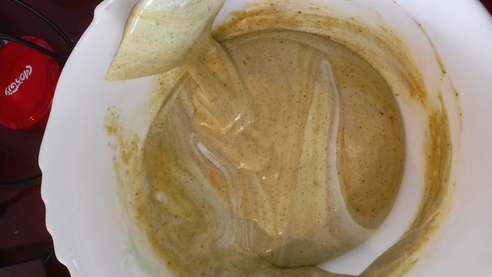 - кефир - 90мл КОМНАТНОЙ ТЕМПЕРАТУРЫ (жирность любая, у меня 1%)