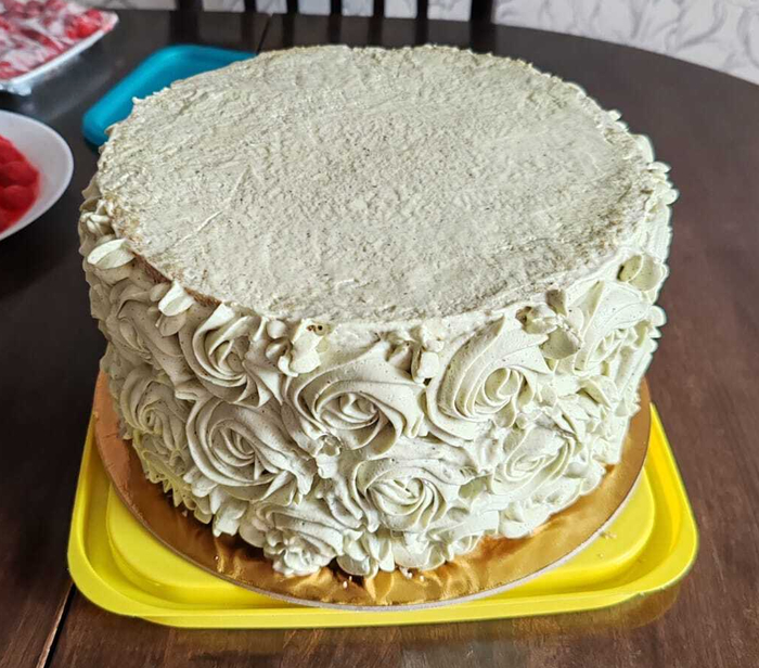 Торт нежный, не приторный, с ярким вкусом и насыщенным ароматом фисташки. Имениннице и гостям торт очень понравился)