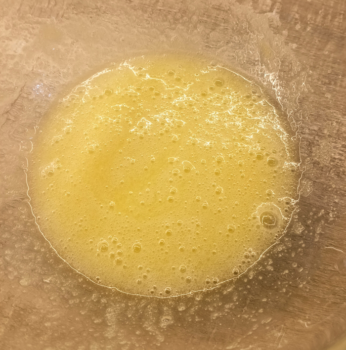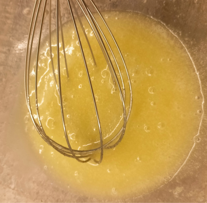 Пока сок греется, начинаю взбивать яйца. Сначала на маленький скорости до образования пузырей, затем ставлю среднюю скорость и начинаю потихоньку всыпать сахар (оставшиеся 70г). Когда весь сахар добавила, ставлю большую скорость и взбиваю до полного растворения сахара.