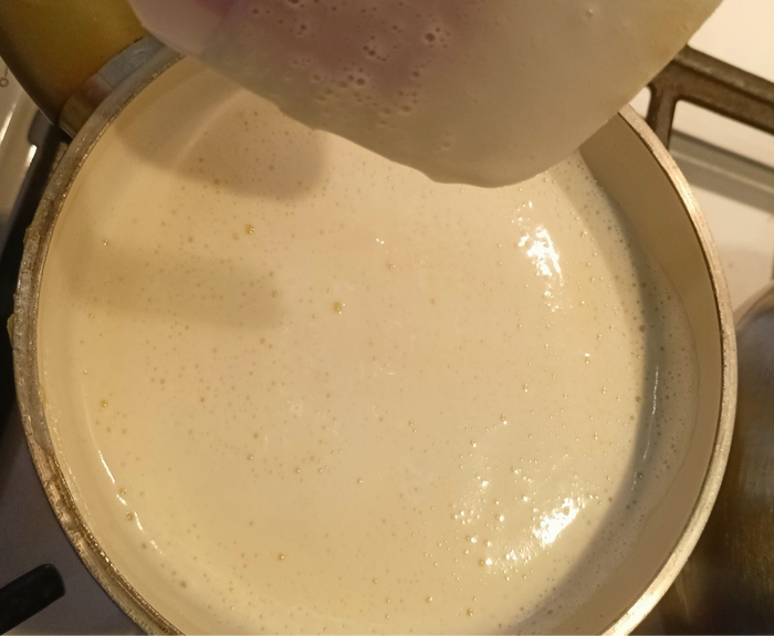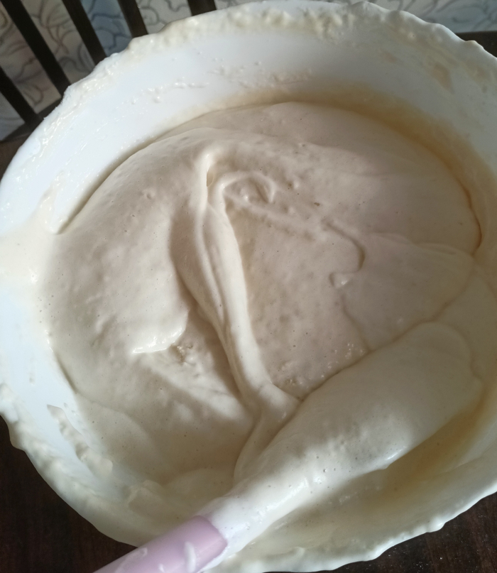 В прошлый раз я готовила этот крем с маслом, получается очень вкусно. Но в этот раз лишнего масла не оказалось, зато мы недавно привезли из деревни домашнюю супер жирнющую сметану, которую я мажу на тост вместо масла, и тает она как масло, и я уже готовила с ней крем для эклеров, и это пушка-бомба-ракета) в общем в этот раз вместо масла я положила очень жирную домашнюю сметану) так же размешивала, пока сметана полностью не растаяла и не разошлась в креме.