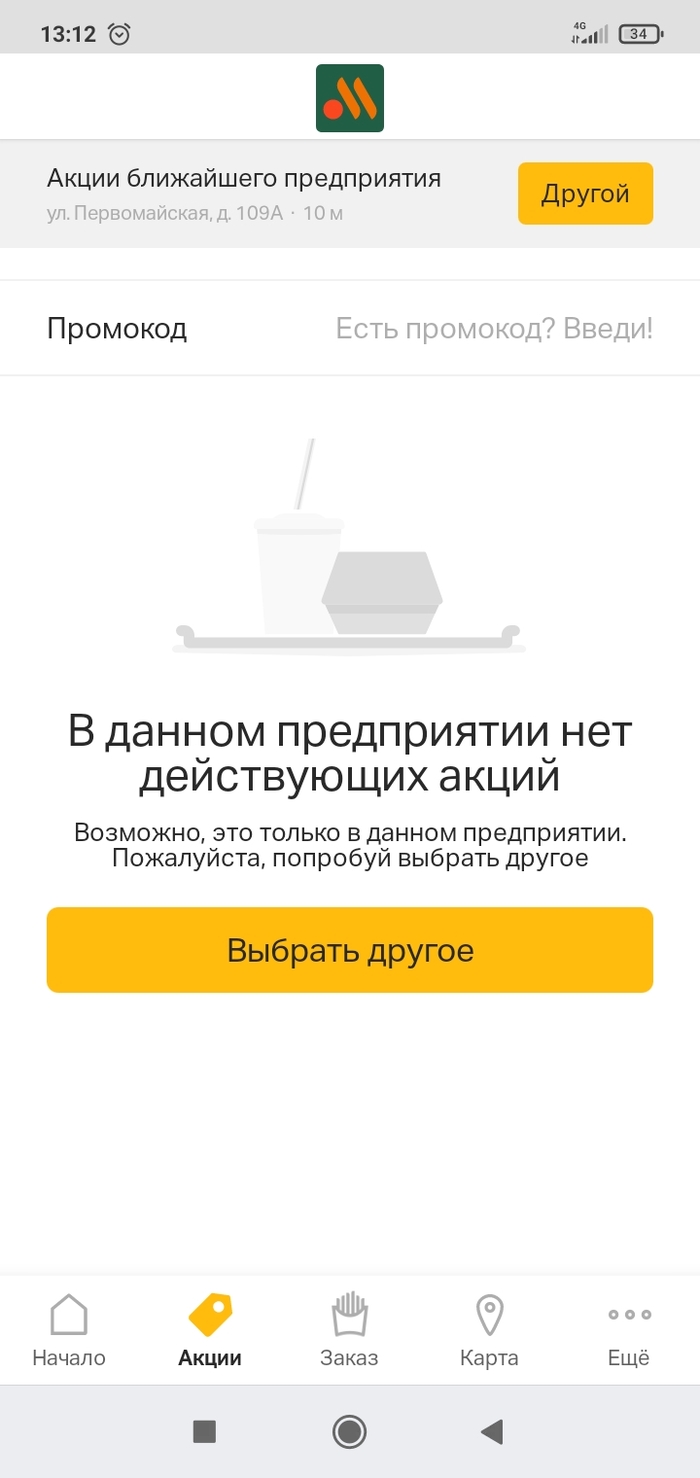 У стойки заказа появляется в моëм приложении окно, мол я попутал и никаких акций не может быть