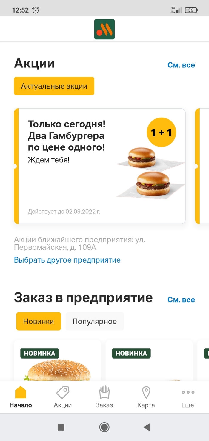 Выходит весьма бюджетно. А самое удобное, это то, что до Вкусно и Точка идти меньше минуты. Запускаю повторно приложение у стойки заказа, а там: