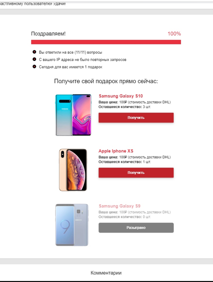 По завершении опроса мне предлагают выиграть/получить телефон за бесценок, а именно за 100 красиво нарубленных деревянных.