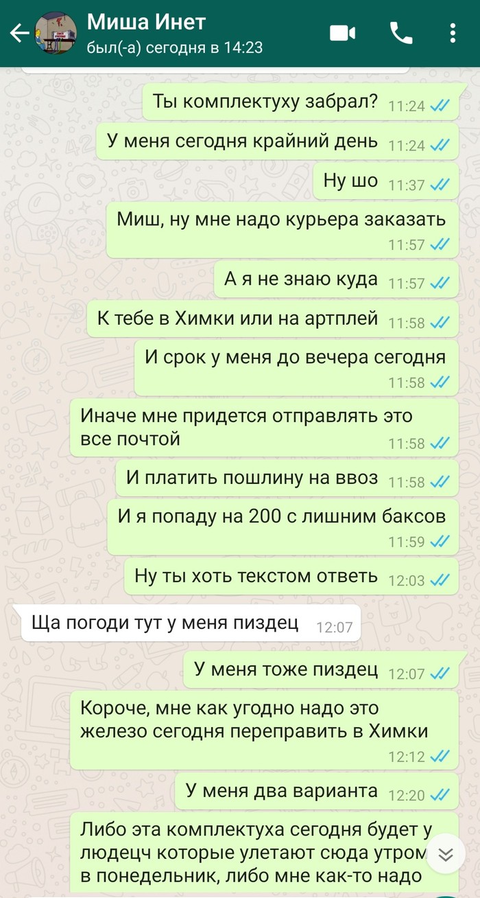 Я его попросил просто забрать комплектуху с собой в Химки. Но и этого он не сделал.