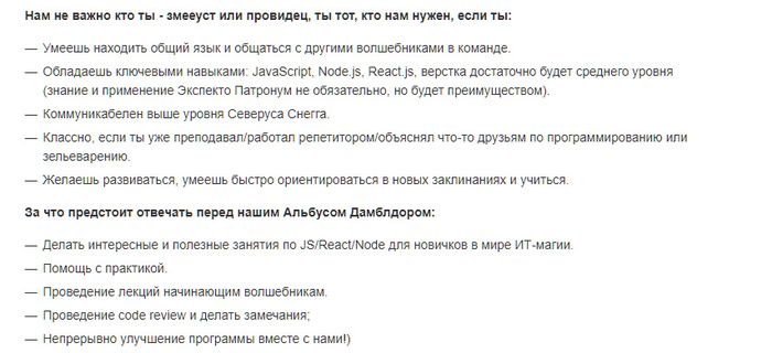 7 zapekanus 4 года назад Дефицит кадров в Хогвартсе Листаю себе вакансии и встречаю этих ребят Показалось, эзотерики совсем разбушевались, ан нет, это просто креативный HR: [моё] Работа HR Трудоустройство Гарри Поттер Ещё 0