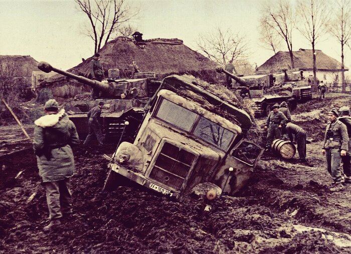 Доходило до того, что немцы бросали прямо на обочинах свои новейшие «тигры», т.к. в условиях бездорожья они были абсолютно бесполезны.