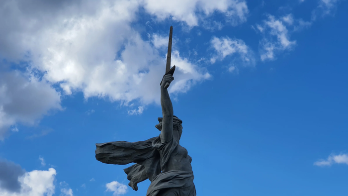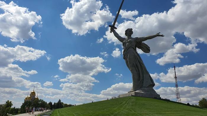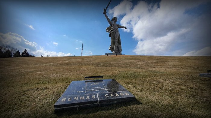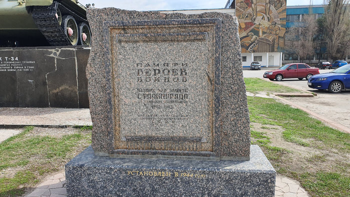 Появился этот танк здесь сразу после войны и был установлен как раз на том месте, где проходил передний край обороны Сталинграда от немецко-фашистских захватчиков.