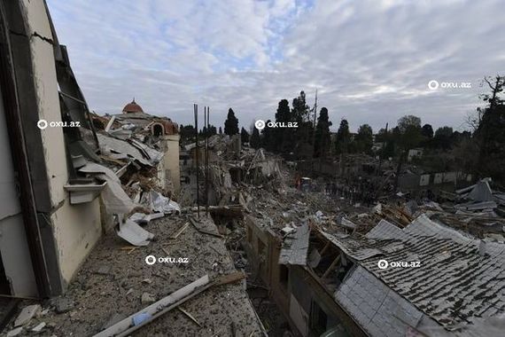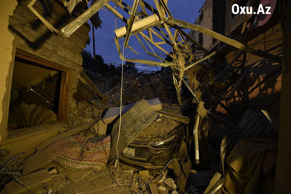 "11 октября примерно в 2:00 (1:00 мск. — Прим. ред.) армянскими вооруженными силами тяжелому обстрелу был подвергнут находящийся вне зоны ведения боевых действий второй по величине промышленный город Азербайджана Гянджа, и в результате ракетного обстрела многоквартирного здания в центре города погибли девять мирных жителей, в том числе четыре женщины", — говорится в сообщении.