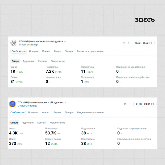 Проект полностью реализован командой маркетингового агентства «ЗДЕСЬ»: от разработки стратегии и подготовки креативов до настройки таргетинга в VK Ads, интеграции с Senler и сквозной аналитики.