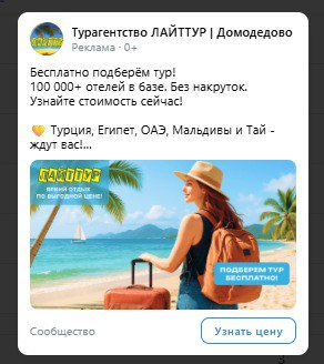 Туристический рынок летом 2025 года был перегрет: высокий сезон, конкуренция за клиентов и рост стоимости рекламы. Тем не менее, наше маркетинговое агентство ЗДЕСЬ помогло турагентству «ЛАЙТТУР» не просто справиться с этими вызовами, но и выстроить стабильный канал лидогенерации через ВКонтакте.