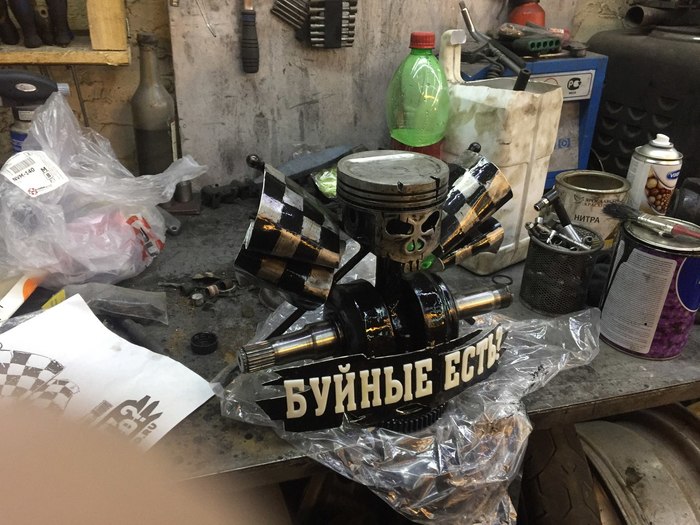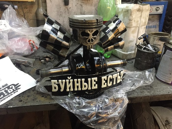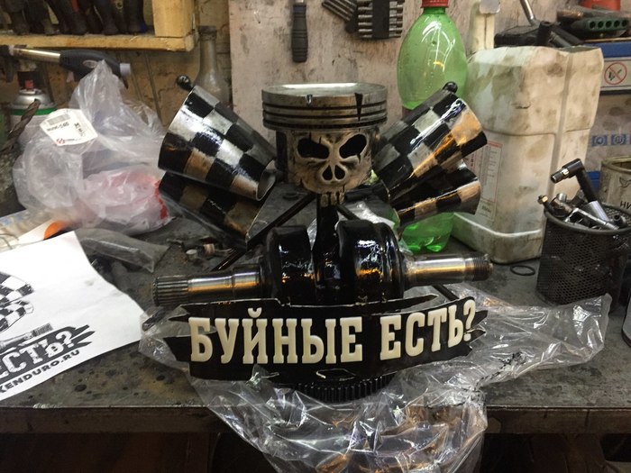 Ручку взял от распредвала какойто машины, не очень удобно хотя в руке как влитой лежит, кулачки расположил так что они как раз под пальцы ложатся. Сбил ящик из досок от паллет, и закрепил внутри вместе с ножиком сделанным из шатуна и напильника (это другой проект был). Для первой работы с обьемным навариваемым сваркой изображением и топором вроде терпимо.