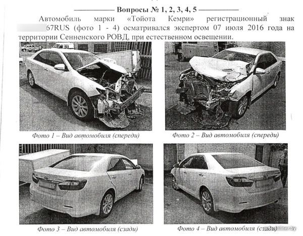 Тогда владелец Toyota обратился к дилеру «Тойота Центр Минск» с просьбой исследовать причину отказа подушек безопасности. Специалисты осмотрели седан на территории Сенненского РОВД, где хранилась машина. Они сделали вывод, что «автомобиль получил повреждения, характерные для подъезда под препятствие».
